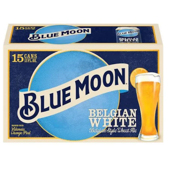 Blue Moon Belgian White is a refreshing wheat beer brewed with coriander and orange peel, creating its distinctive smooth and citrusy flavor profile. The beer pours with a characteristic cloudy appearance and offers a crisp, easy-drinking experience that pairs beautifully with lighter fare like salads, seafood, and grilled chicken. This 15-can pack provides excellent value for Blue Moon enthusiasts and is ideal for gatherings, barbecues, or simply keeping your refrigerator well-stocked. Traditionally garnished with an orange slice, Blue Moon offers a consistently satisfying craft beer experience that appeals to both casual beer drinkers and wheat beer aficionados.Additional information