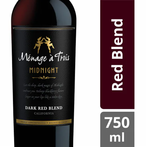 Menage a Trois Midnight is a bold California red wine blend that delivers rich, dark fruit flavors with smooth tannins. This premium wine offers exceptional value for everyday enjoyment or special occasions.