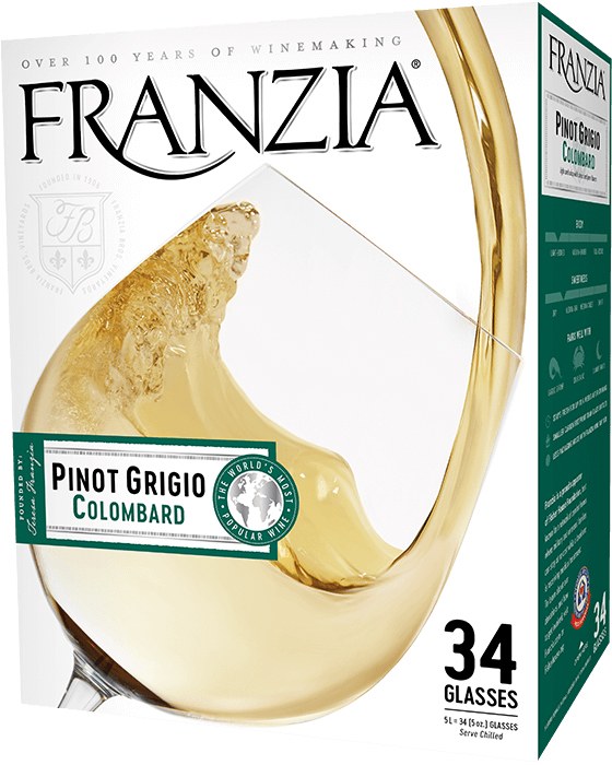 Franzia Pinot Grigio is a refreshing California wine available in a convenient 5-liter box format, perfect for everyday enjoyment and entertaining. This crisp white wine delivers easy-drinking appeal with its light, approachable character that pairs well with any occasion.