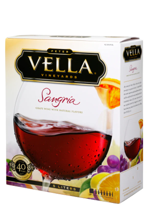 Peter Vella Sangria is a refreshing California wine blend that delivers the classic Spanish-inspired fruit flavors in a convenient 5-liter box format. This ready-to-drink sangria offers exceptional value for parties, gatherings, and casual entertaining.