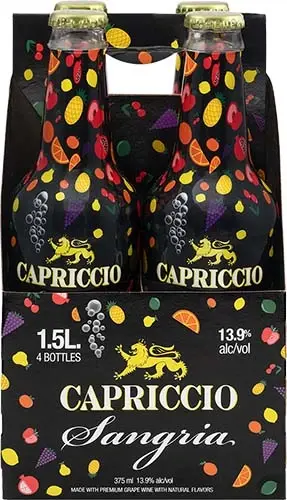 Capriccio Red Sangria delivers the classic taste of traditional Spanish sangria in a convenient ready-to-drink format, crafted with California red wine as its foundation. This fruity wine blend captures the essence of authentic sangria with its vibrant red wine base enhanced by natural fruit flavors. Perfect for poolside gatherings, barbecues, or any social occasion, this sangria serves best chilled over ice with fresh fruit garnishes. The 4-pack format makes it ideal for sharing with friends or stocking up for entertaining.Additional information