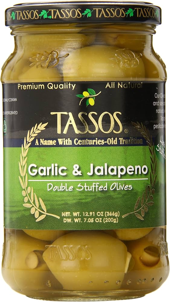 Tassos Jalapeno Olives deliver a perfect balance of Mediterranean tradition and spicy heat in a convenient 13oz jar. These premium olives combine the rich, briny flavor of quality olives with the bold kick of jalapeño peppers, making them ideal for cocktail garnishes and appetizer spreads.