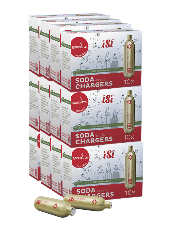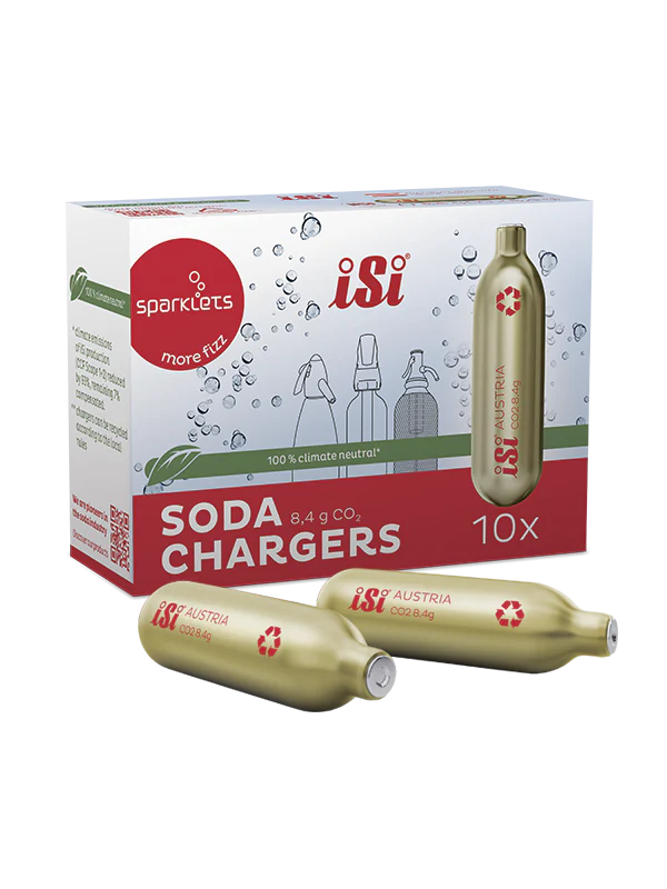 Soda Chargers 5-pack contains premium CO2 cartridges designed for home carbonation systems and soda makers. These food-grade chargers provide consistent carbonation for creating sparkling water, sodas, and cocktail mixers at home.