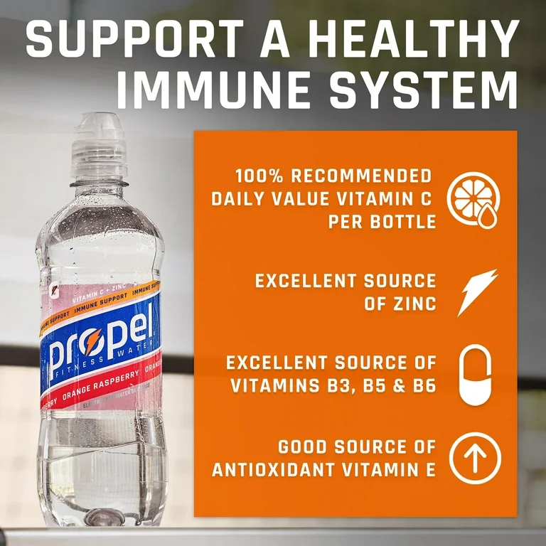 Propel Orange Raspberry is a zero-calorie fitness water enhanced with electrolytes and natural fruit flavors. This refreshing 16.9 fl oz sports drink provides hydration support with a delicious citrus-berry taste. Perfect for athletes, fitness enthusiasts, and anyone seeking flavorful hydration without the calories.