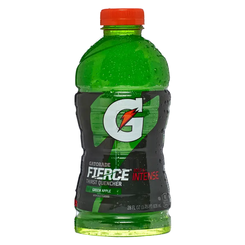Gatorade Fierce Green Apple is a bold sports drink that delivers intense green apple flavor in a convenient 28oz bottle. This electrolyte-enhanced beverage is perfect for athletes and active individuals seeking hydration and energy replenishment during or after intense physical activity.