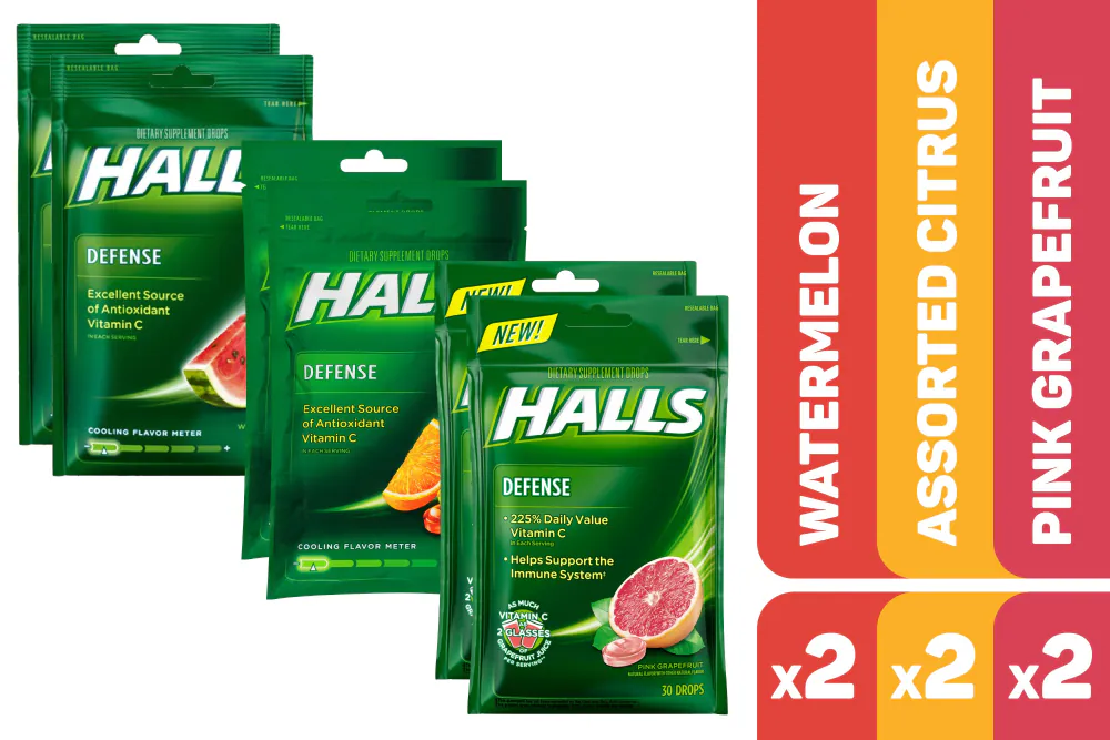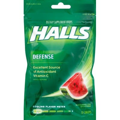 Halls Defense Watermelon drops provide soothing throat relief with a refreshing watermelon flavor. This 30-count package offers convenient, portable wellness support for daily use. Perfect for anyone seeking tasty throat comfort on the go.