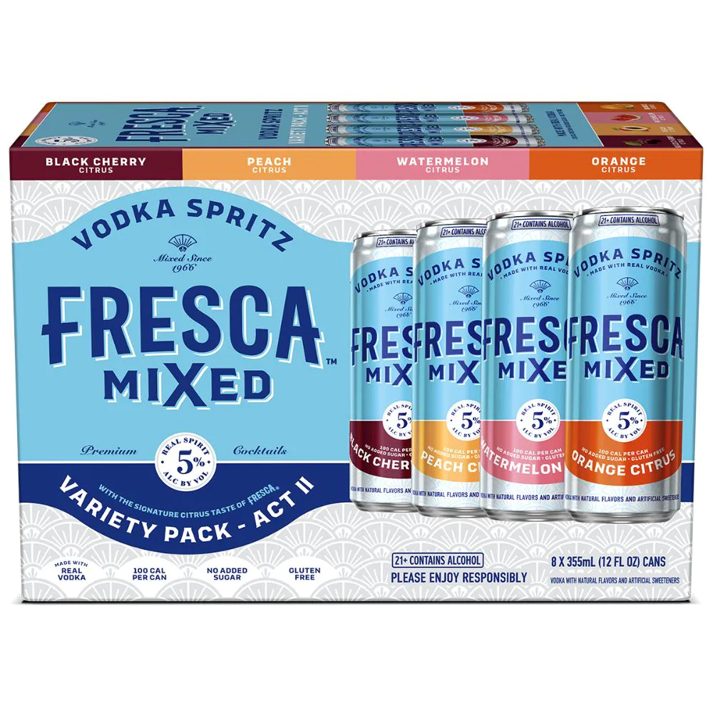 Fresca Mixed Variety 8-pack brings together a refreshing collection of citrus-inspired alcoholic beverages perfect for any occasion. This convenient variety pack offers multiple flavors of the beloved Fresca brand in ready-to-drink format, ideal for parties, gatherings, or casual enjoyment.