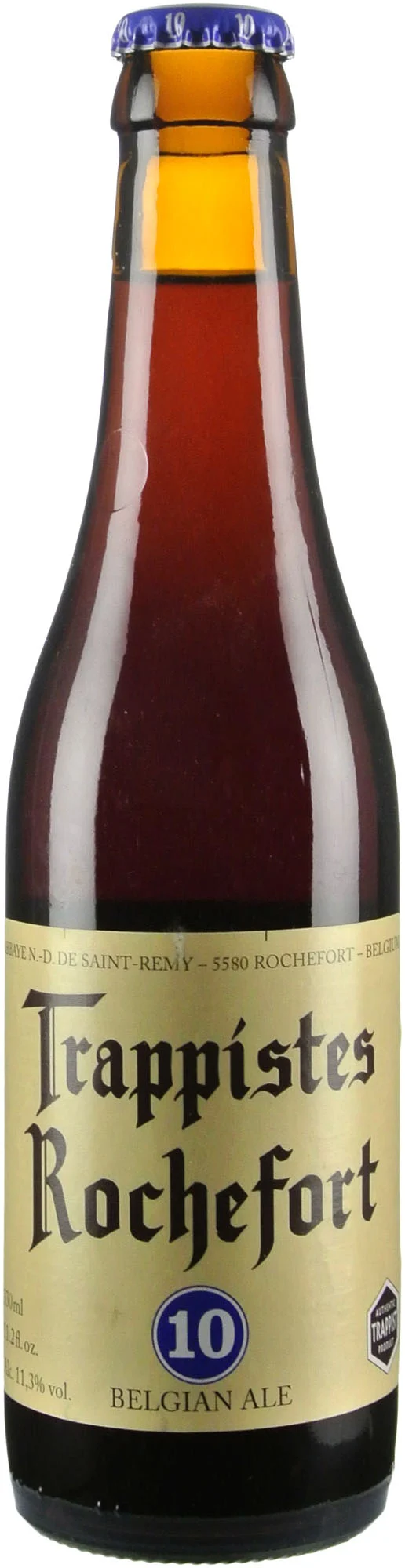 Trappists Rochefort 10 is a legendary Belgian Trappist ale crafted by monks at the Abbey of Notre-Dame de Saint-Rémy in Rochefort. This dark, complex quadrupel represents the pinnacle of traditional Belgian brewing with its rich, full-bodied character and exceptional depth of flavor.