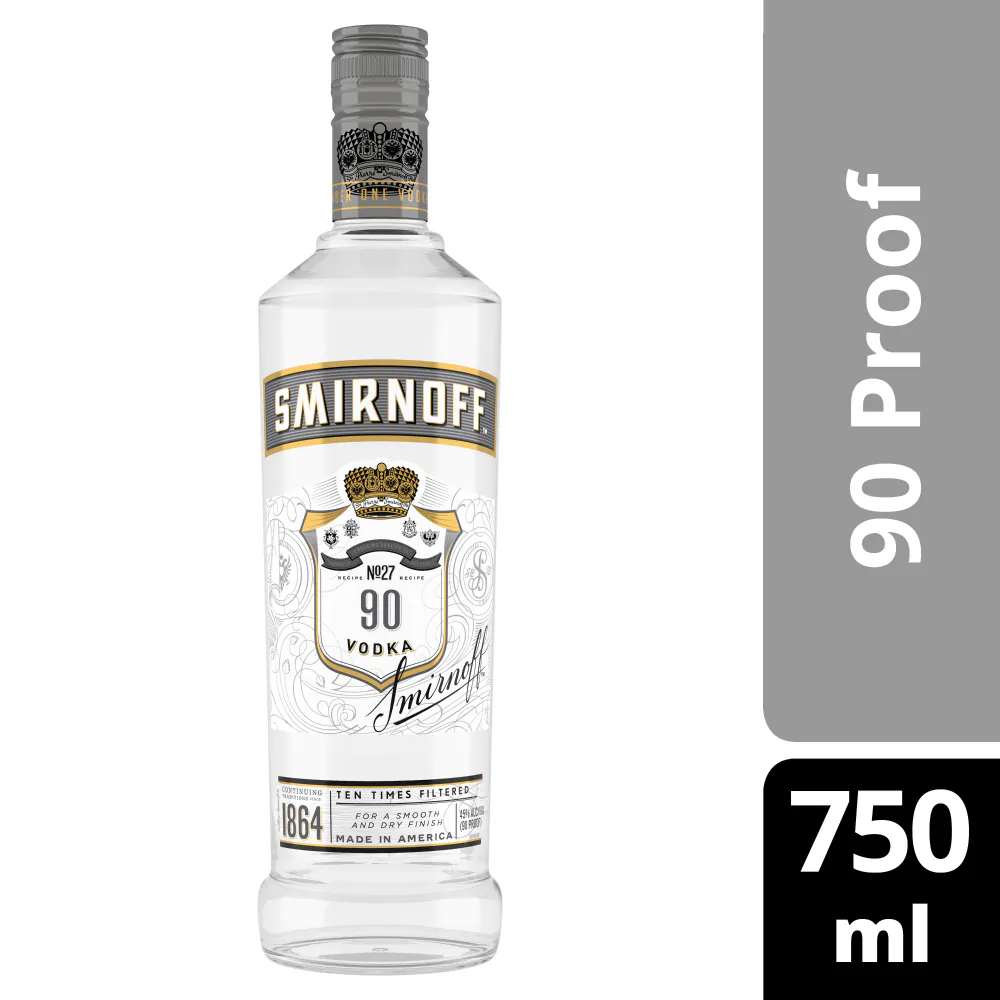 Smirnoff Vodka 90 Proof delivers a bold, higher-strength vodka experience in a convenient 750ml bottle. This premium Russian-style vodka offers exceptional smoothness with increased potency, perfect for serious vodka enthusiasts and craft cocktail creation.
